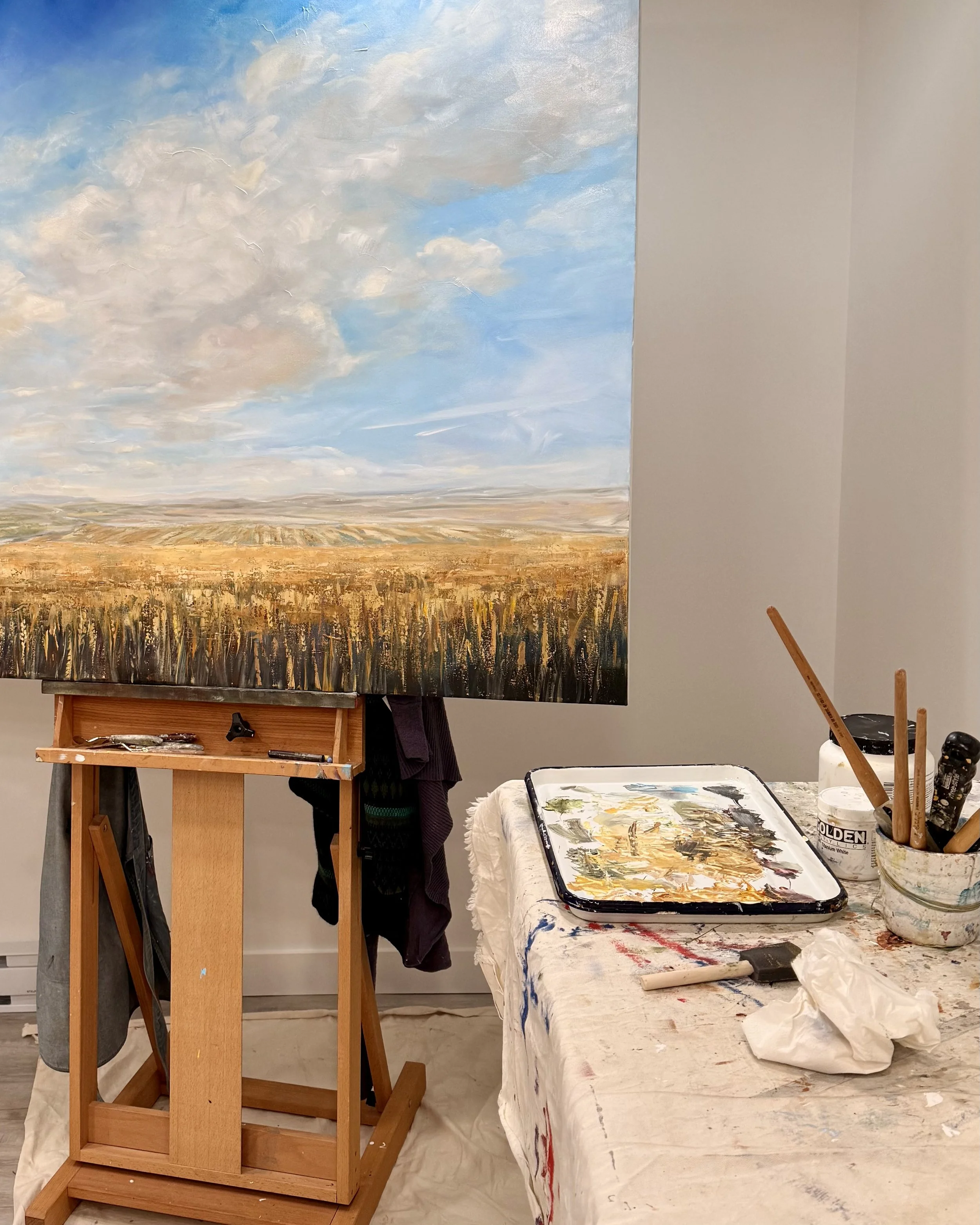 Welcome to my studio where I explore big skies and wide open spaces as a way of reconnecting with my roots while remembering those who are part of my story. It’s a place where possibilities await just beyond the horizon.